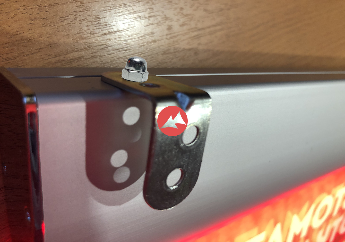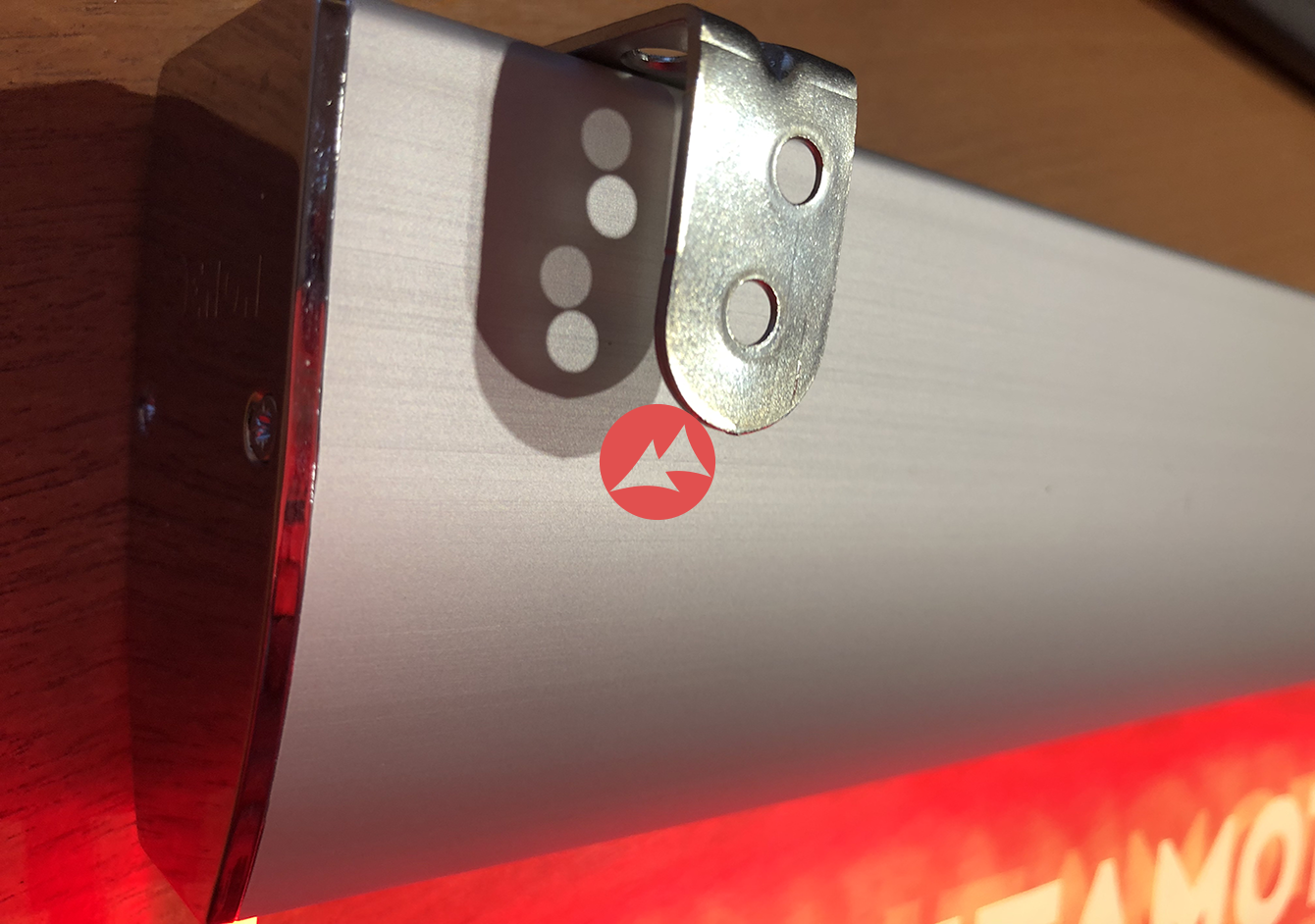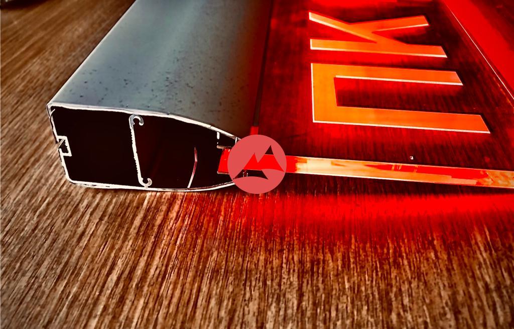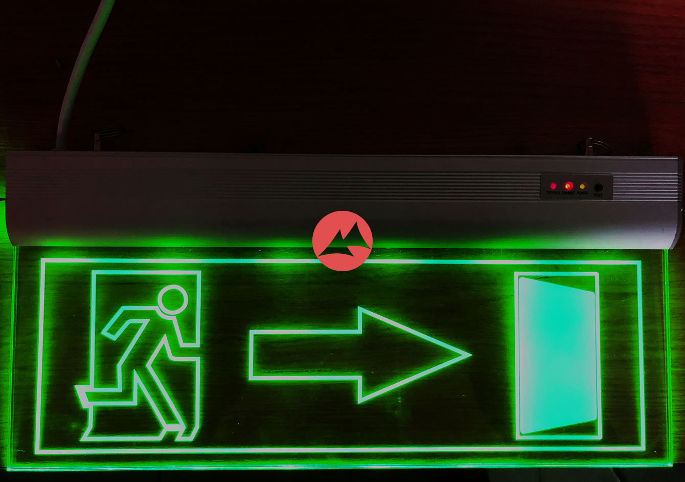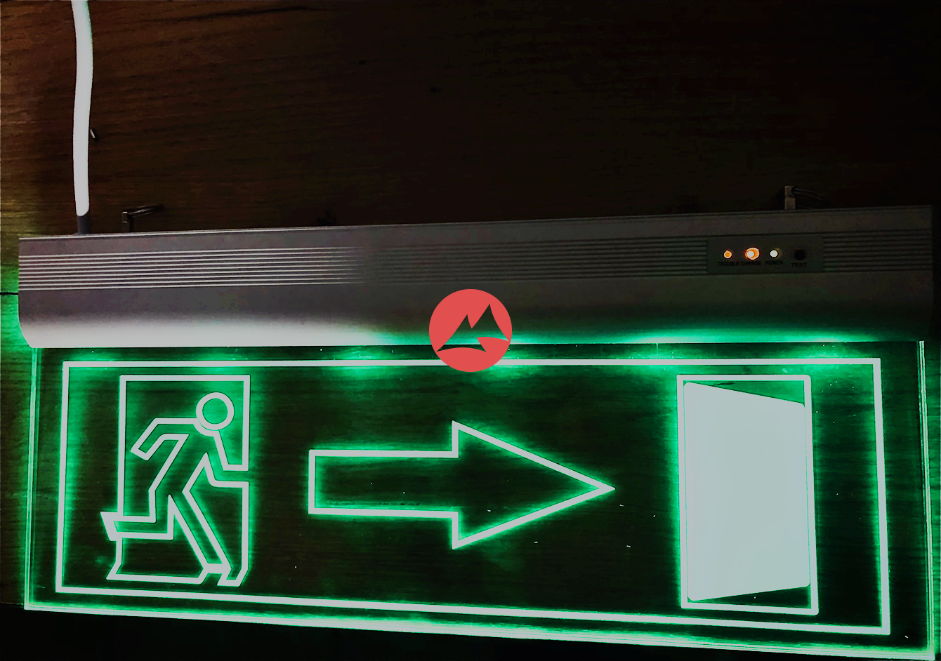 Табличка пожарной безопасности в тонком профиле с аварийным блоком питания.