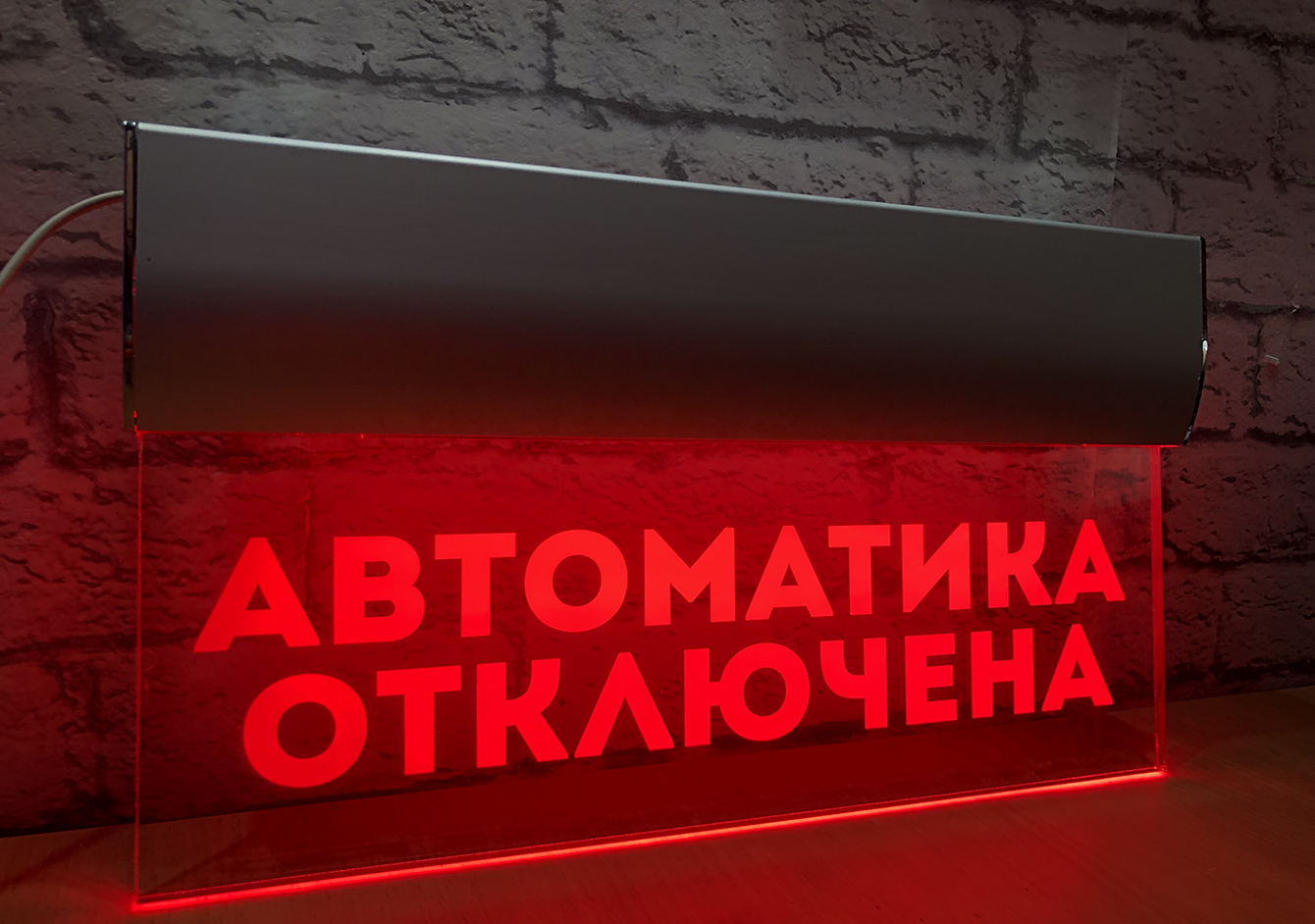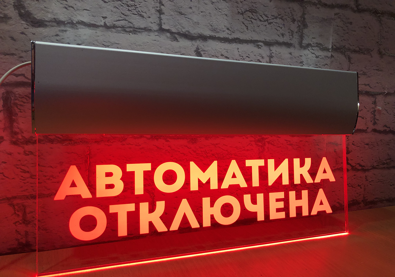 - Оповещатель АВТОМАТИКА ОТКЛЮЧЕНА может поставляться с любой надписью и фоном под заказ.