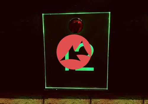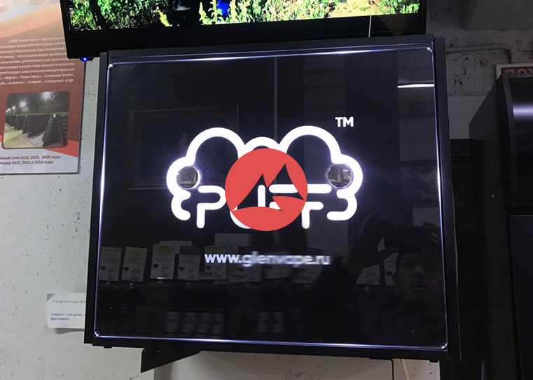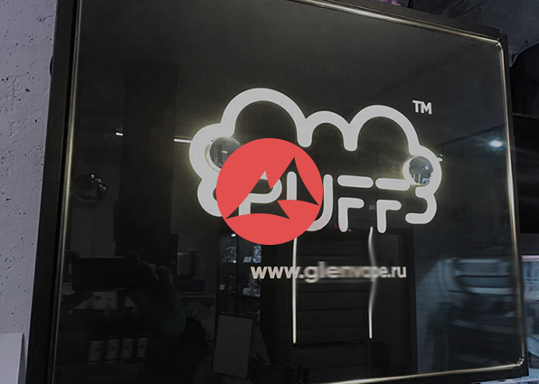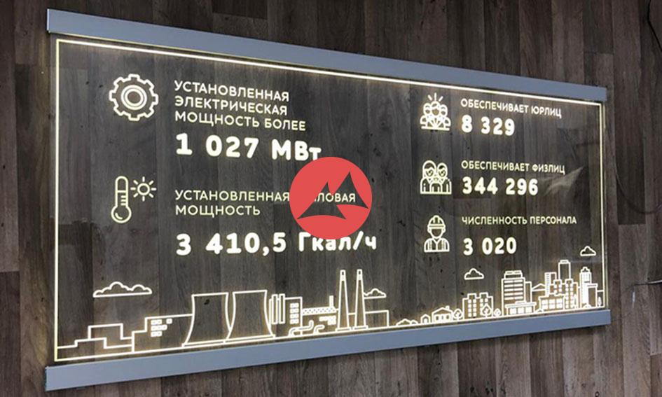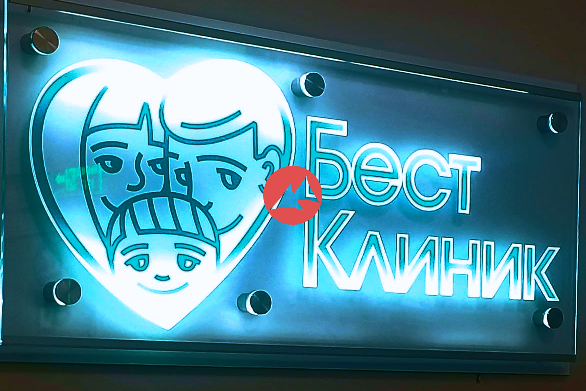 Тонкая вывеска из стекла с подсветкой