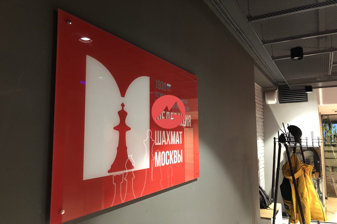 Вывеска из закаленного стекла на дистанционных держателях с УФ печатью размер 1600х800мм.