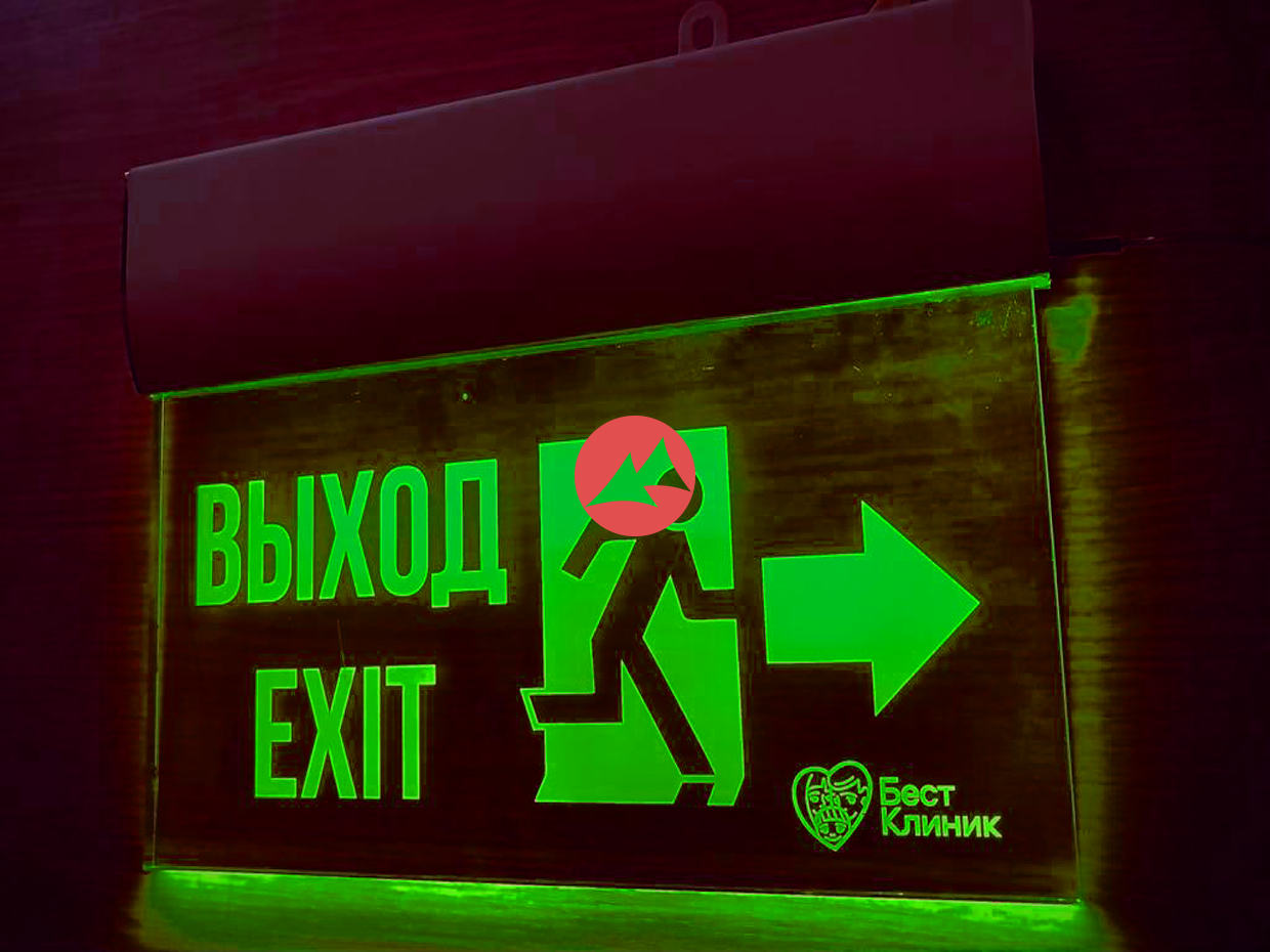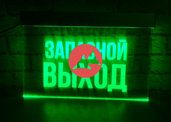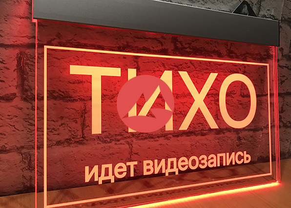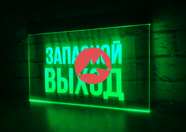 изготовлена из акрила толщиной 10 мм нанесением гравировки или УФ печати установленного в светодиодный профиль оснащенным светодиодной лентой необходимого цвета (красный, зеленый, синий, белый). Имеет 3 вида крепления.