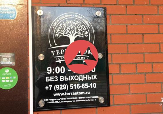 Табличка на вход с подсветкой из стекла
