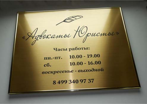 Комбинированные таблички из стекла и золотого пластика.