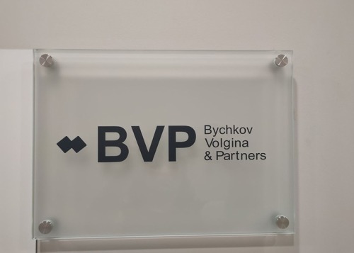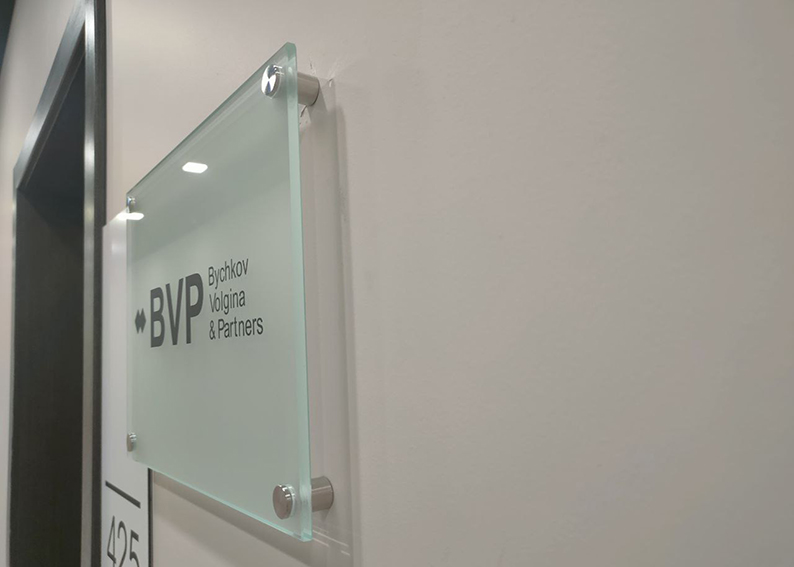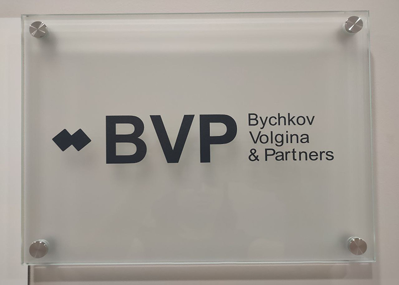 Табличка из матового стекла на дистанционных держателях.