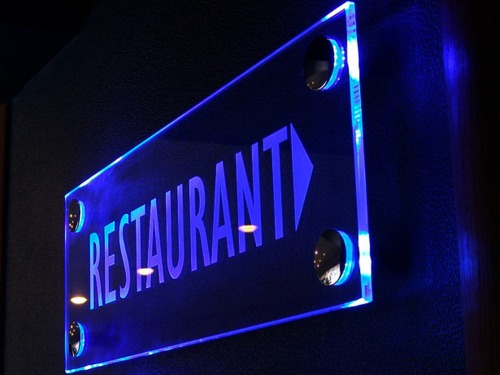 Табличка изготовлена с использованием безрамочной технологии на дистанционных держателях со встроенной матрицей.